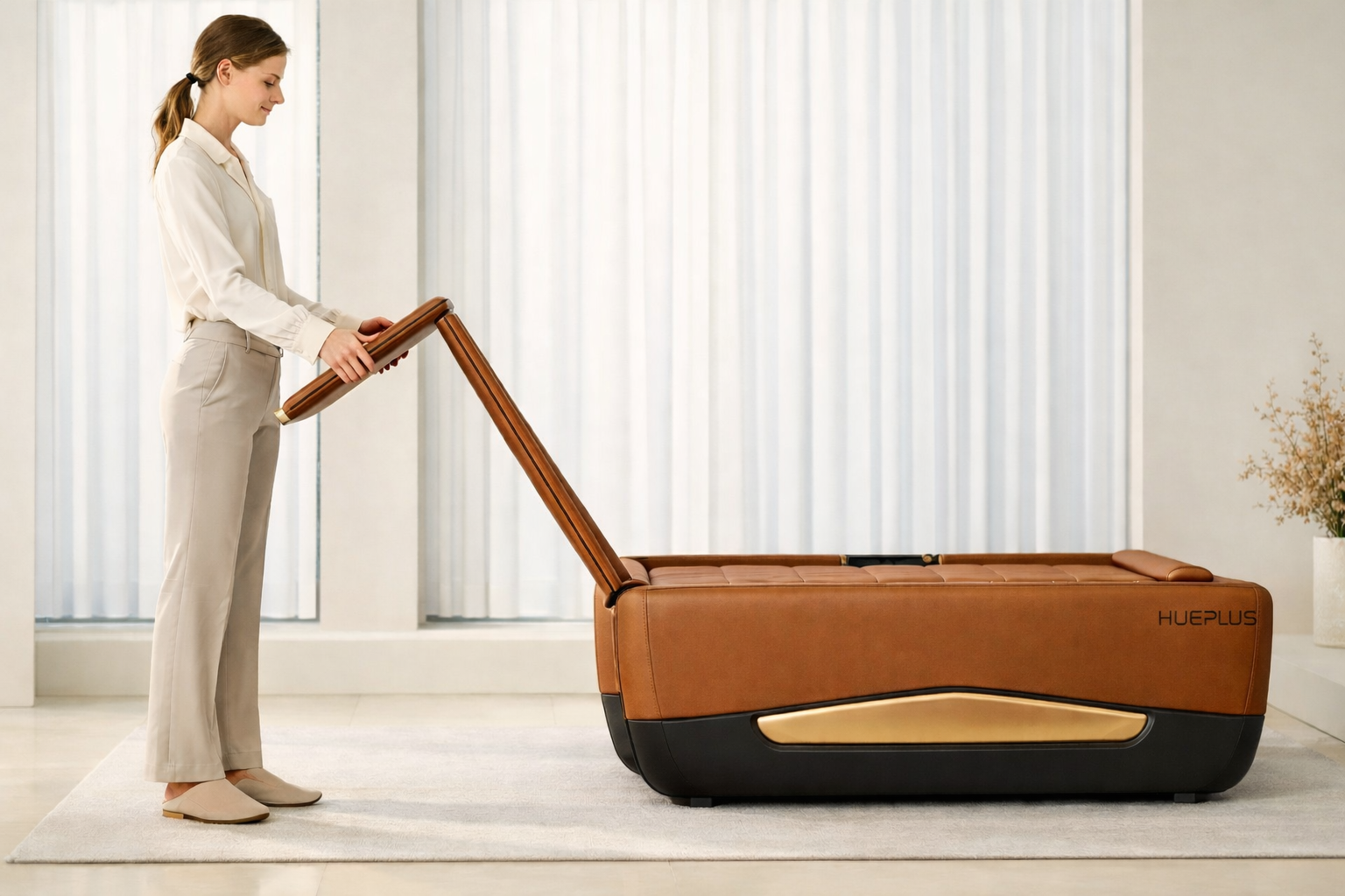 Bật nguồn bằng remote điều khiển, lựa chọn chế độ massage phù hợp với nhu cầu sử dụng như massage nhẹ nhàng, thư giãn sâu hoặc tập trung vào vùng lưng – thắt lưng. Người mới sử dụng nên bắt đầu với mức cường độ thấp.